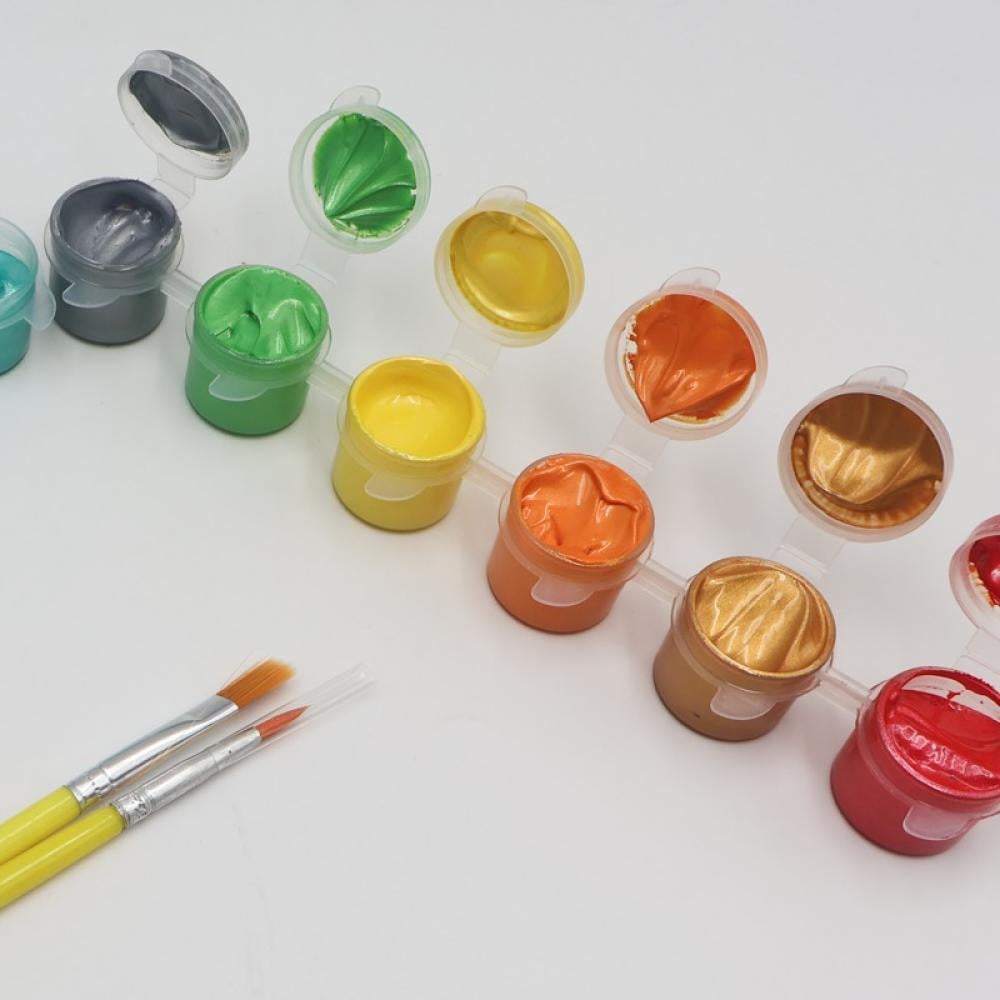 - ألوان اكريليك بقوام كريمي و ألوان زاهية من 12 لون.