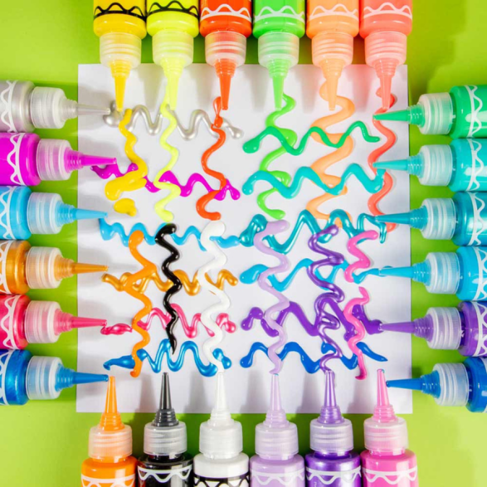 يمكن للفنانين الصغار اطلاق العنان لأبداعهم في المنزل أو في الفصل الدراسي من خلال ألوان الملصقات، تسهم هذه المجموعة المميزة بلونها الساطع اللامع في تطوير مهارات اطفالك وتعزيز الخيال لديهم.